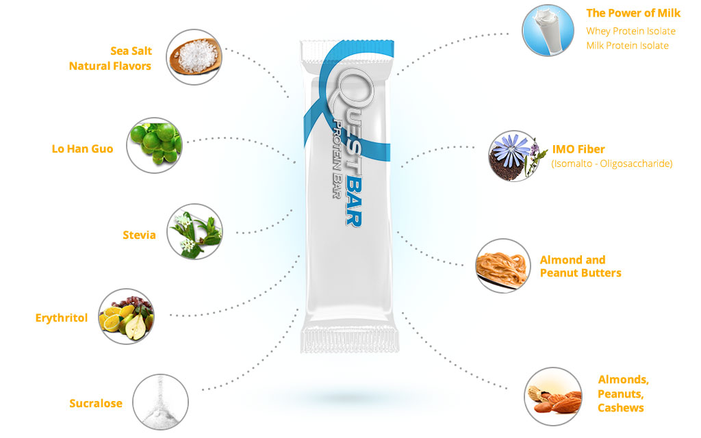 - Each Quest bar contains around 200kcals and 20g of protein.