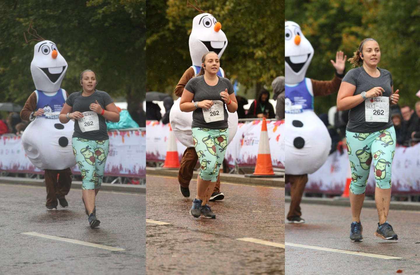 I sprinted (or felt like I did) down the finishing straight chased by a guy dressed as Olaf – I wasn’t going to be beaten by someone in a snowman costume which definitely made for some hilarious race photos!