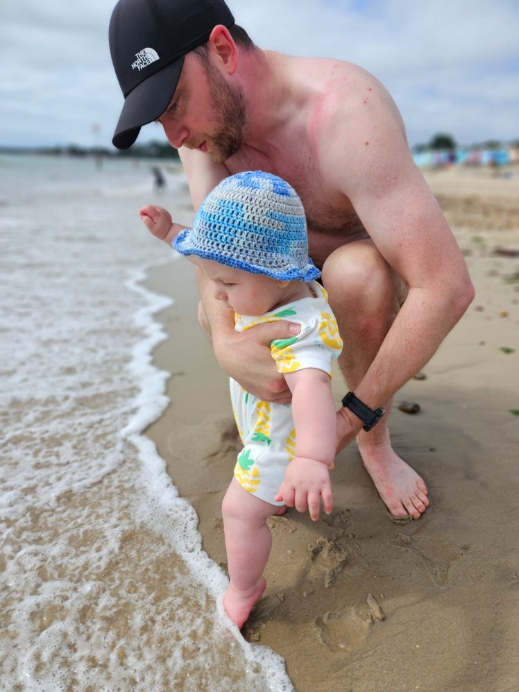 Although there is a beach level car park directly next to Avon Beach, we actually parked at the top of the hill a little further along the coast (Steamer Point car park – there is a ramp down to the beach). This is nearer the sand and shingle beach at Highcliffe, and away from the cafΓ© and beach huts in Christchurch. It was therefore a lot quieter even with the hot weather and we were able to find somewhere to set up our beach tent and have room to play. However, it’s worth bearing in mind if you preferred to be on the stretch of beach which is patrolled by lifeguards in the summer (or wanted an ice cream!), you’d need to park at the main Avon Beach car park.