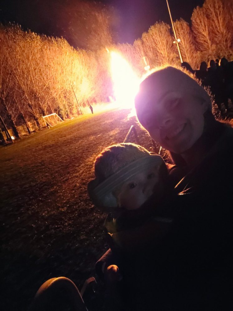 I love watching fireworks for Bonfire Night on 5th November and this year we managed to make it along to the local village display. It was small scale with no choreographed music or fairground rides or anything, just a huge bonfire and some fireworks set off on the village football club grounds. It was the perfect first experience for Arthur as we could walk there from home, was held relatively early in the evening and didnβt feature too many of the huge fireworks that can be more scary for little ones. He wore some baby ear defenders to protect him from all the loud noises and seemed to quite enjoy the pretty lights!